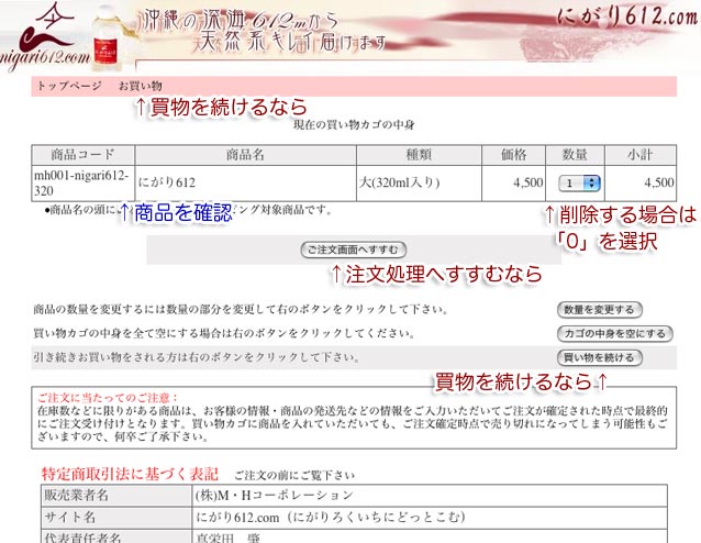 すべて商品を削除する場合は『カゴの中身を空にする』ボタンをクリックします。