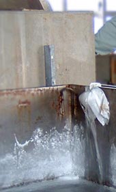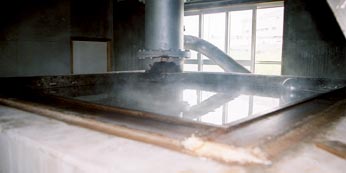 平釜により煮詰める製塩方式は、善くも悪くも海水中の水分以外のものがすべて残ります。だから原料となる海水の清浄性が重要になってきます。